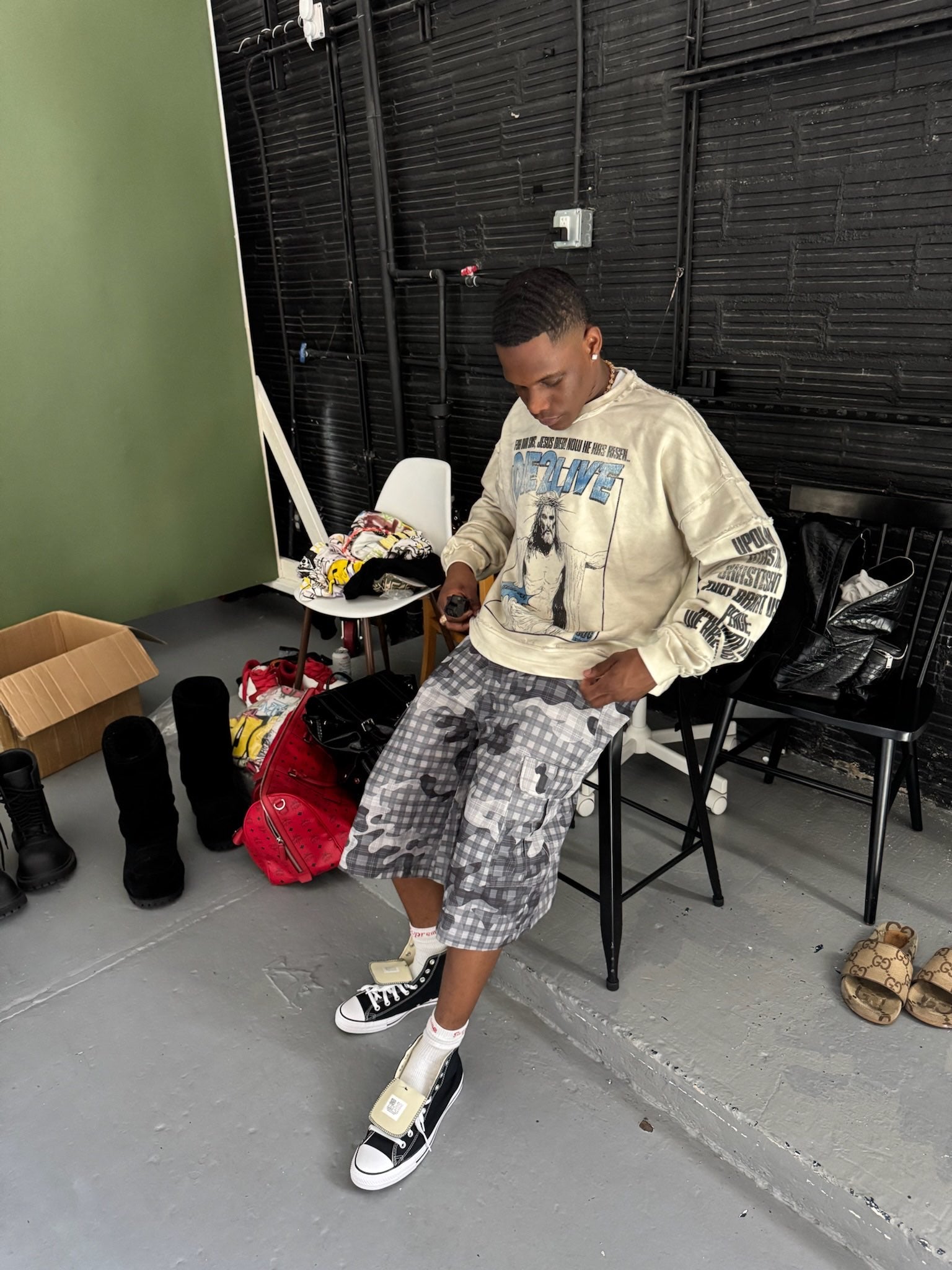 Plaid Camo Shorts (Gray)